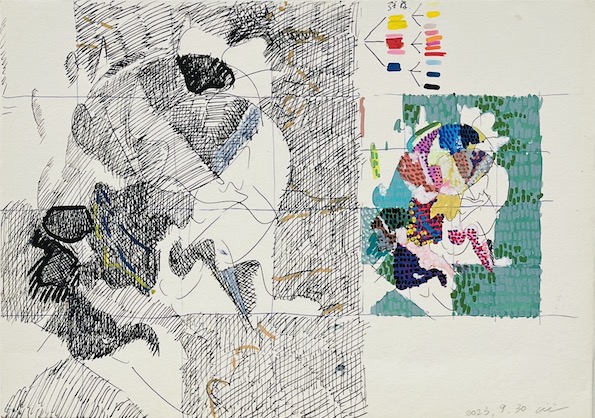 a tree-part form of pcture 2023 gel pen acrylic marker pen on paper 29x22cm